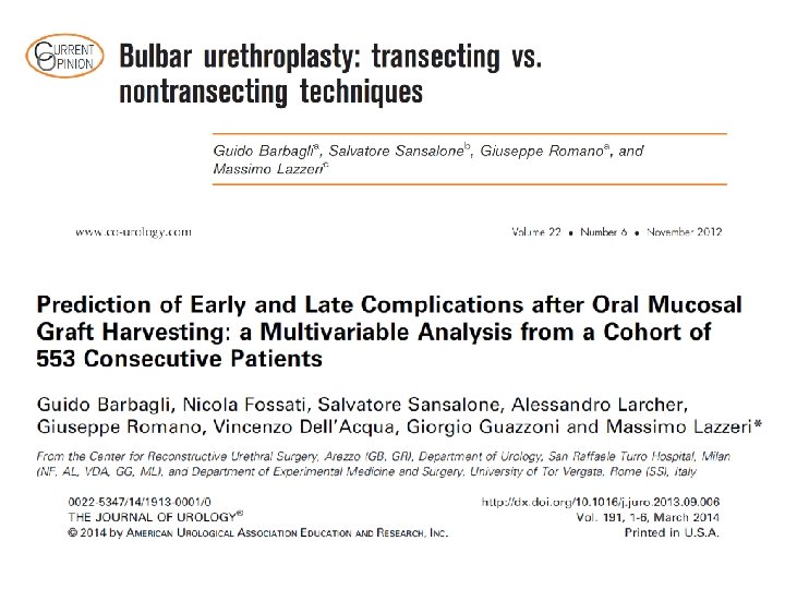 Nella uretroplastica bulbare, una lesione dei muscoli bulbospongiosi ed dei nervi perineali può giocare un ruolo determinante nel danneggiare la capacità contrattile di questi muscoli, causando disturbi dell’eiaculazione e della minzione.
