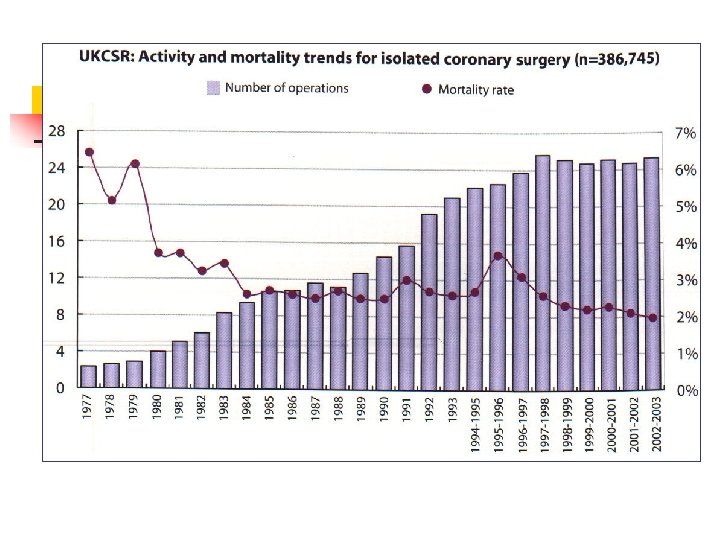 Quelques références en 2005 n Outcome of ederly patients undergoing open-heart surgery in a developing country; Haribaran S, Fakoory MT, Int J Clin Pract 2005; 59: 953 -7 « The hospital mortality rate was 3. 9% for all patients and 9. 8% for octogenarians » Predictors of low cardiac output syndrome after isolated aortic valve surgery; Maganti MD, Borger MA, David, TE ; circulation 2005, 30; 112: 1448 -52 The independents predictors factors of LOCS were n Renal failure (5. 0) n Earlier year of opération (4. 4) n Left ventricular ejection fraction (3. 6) The independents predictors factors of mortality were n Shock (3. 2) Renal failure (5. 0) n Female gender (2. 8) n Increasing age (1. 2) urgency (3. 4) n Previous shock (3. 6) Congestive heart failure (2. 6) Previous cardiac surgery (2. 3) Small AV size (1. 3)