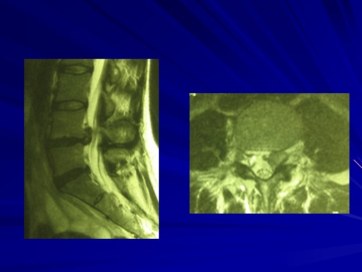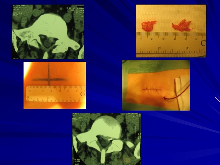 IMPERATIF en cas de sciatique PARALYSANTE Doit rester le dernier recours Sciatique très douloureuse (jour et nuit) et résistante au traitement médical L’Imagerie (Scanner, IRM) doit concorder avec les symptômes HERNIE DISCALE LOMBAIRE CANAL LOMBAIRE ETROIT (Arthrose) AUTRES CAUSES (Neurinomes)