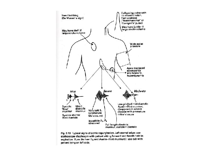 Příznaky • nespecifické - dušnost při námaze, angina pectoris, palpitace, srdeční selhávání, náhlá smrt • akutně vzniklá vada- rychlá progrese obtíží, do těžkého srdečního selhání • chronická – postupná progrese tíže vady, i těžká vada bývá leta asymptomatická – symptomy = pozdní známka • důležité pro indikaci chirurgie u stenóz • ne zcela zásadní pro indikaci chirurgie u regurgitací, indikace i před symptomy