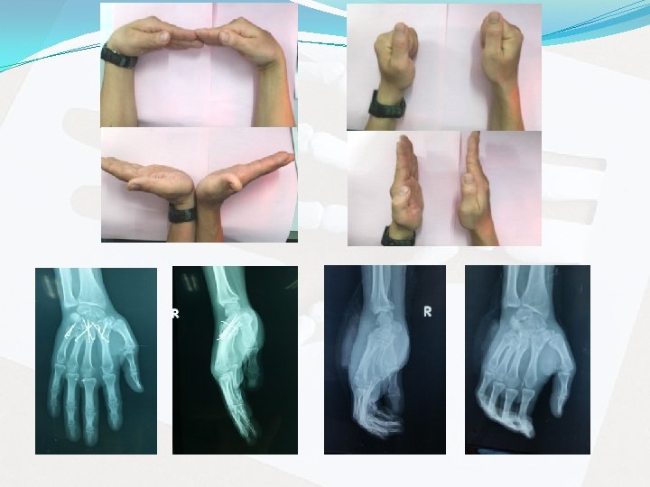 Hậu phẫu: 4 tuần tháo nẹp bột Tập VLTL 3 tháng Làm việc sau 4 tháng Rút kim sau 1 năm Chức năng: - ROM: gập cổ tay hạn chế - Sức nắm (P) 30 kg, (T) 20 kg (giảm 33%) - Hài lòng 8/10 - Chỉ số Mayo Clinic: 75/100 Kết quả chung: Khá