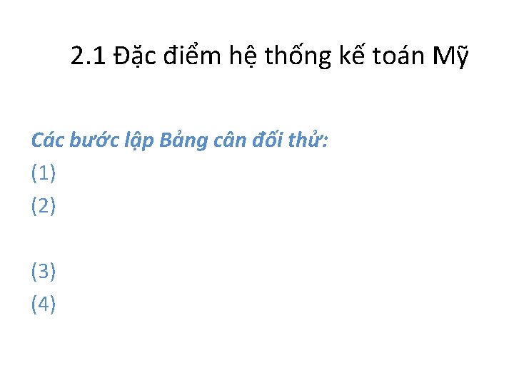 2. 1 Đặc điểm hệ thống kế toán Mỹ Bảng cân đối thử (Trial Balance) -