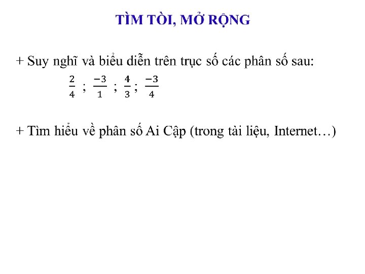 1) Khái niệm phân số âm ba phần bốn Hãy lấy một số ví dụ tương tự? Hãy so sánh khái niệm này với khái niệm về phân số đã học ở Tiểu học?