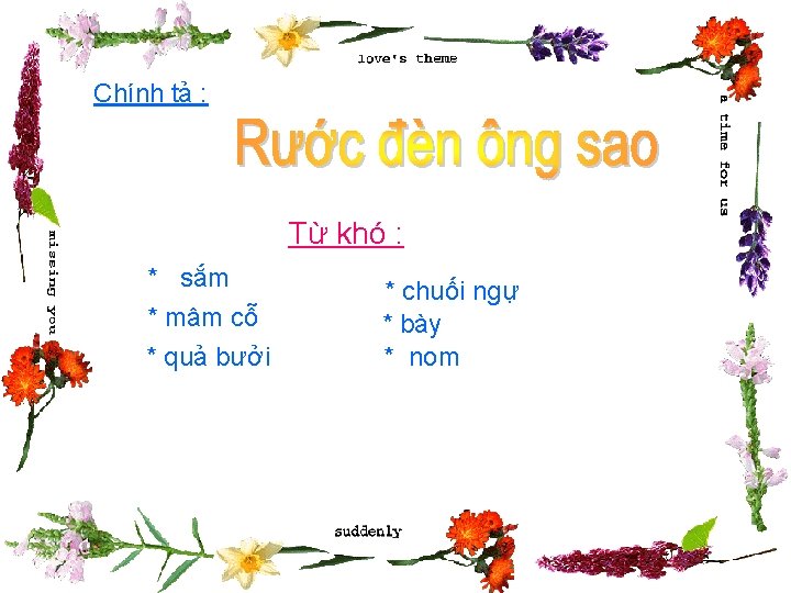 Chính tả : Tết Trung thu đã đến. Mẹ Tâm rất bận nhưng vẫn sắm cho Tâm một mâm cỗ nhỏ : một quả bưởi có khía thành tám cánh hoa , mỗi cánh hoa cài một quả ổi chín , để bên cạnh một nải chuối ngự và bó mía tím. Tâm rất thích mâm cỗ. Em đem mấy thứ đồ chơi bày xung quanh , nom rất vui mắt ,