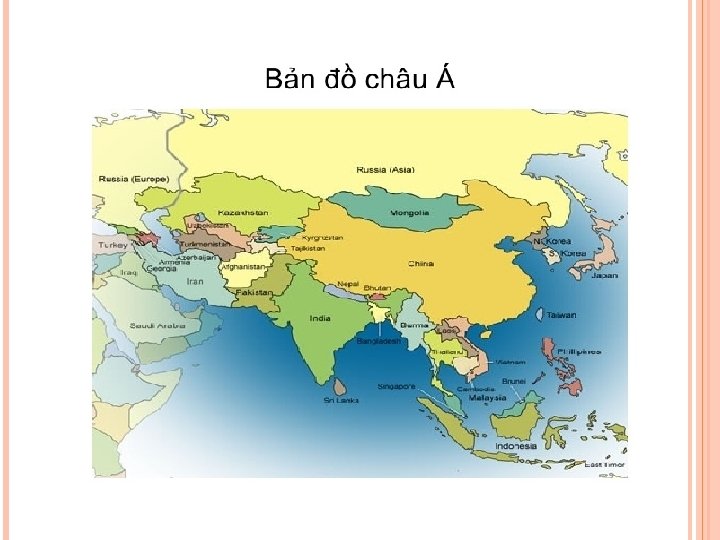 Chính trị + Sau chiến tranh thế giới thứ hai hầu hết các nước Châu Á đã giành độc lập. + Nửa sau thế kỷ XX : không ổn định do chiến tranh xâm lược của đế quốc ( ĐNÁ và Tây Á ). + Sau chiến tranh lạnh (1989) xảy ra xung đột biên giới , phong trào ky khai , khủng bố.