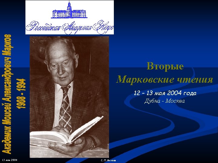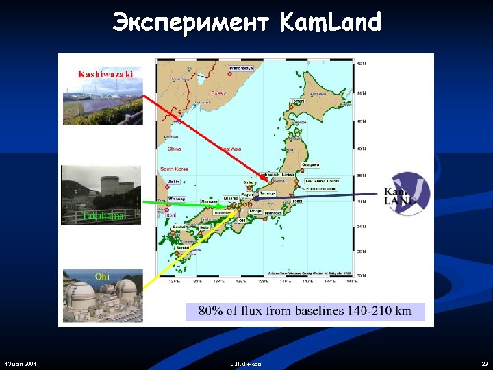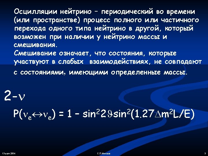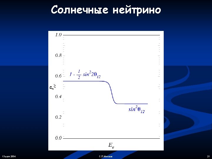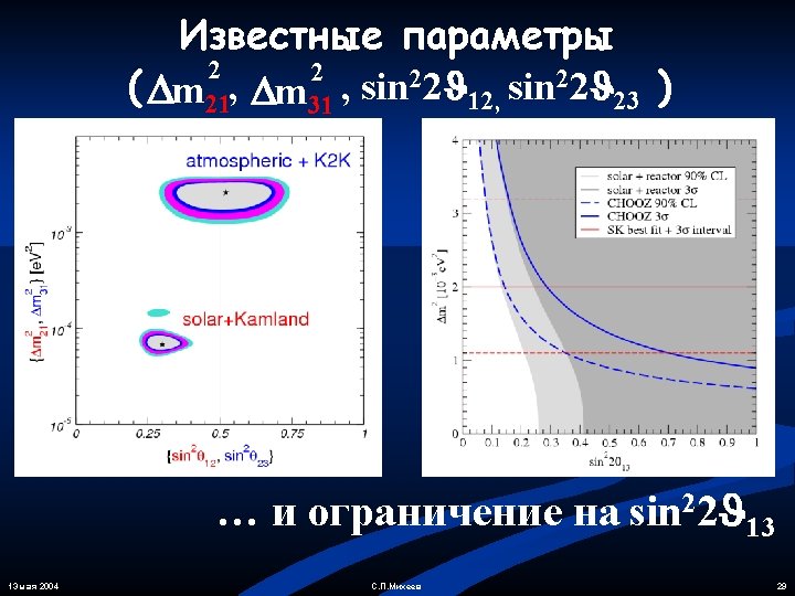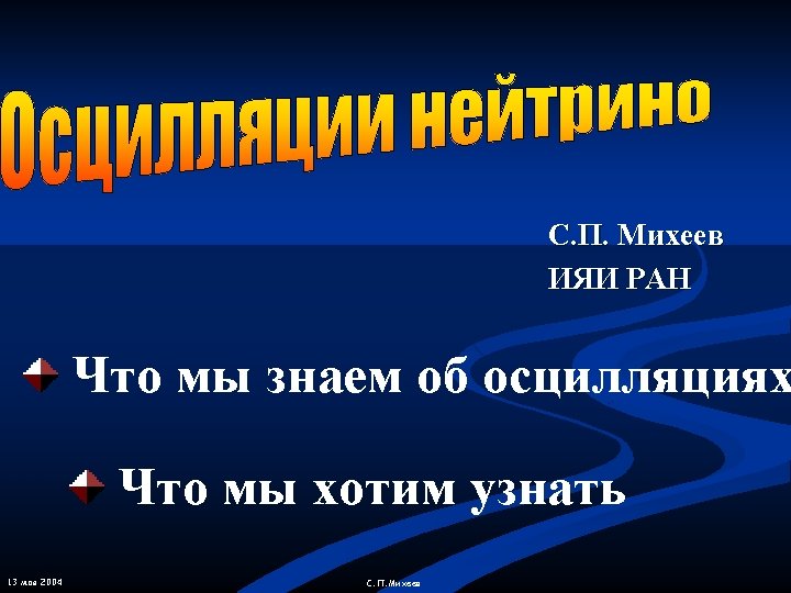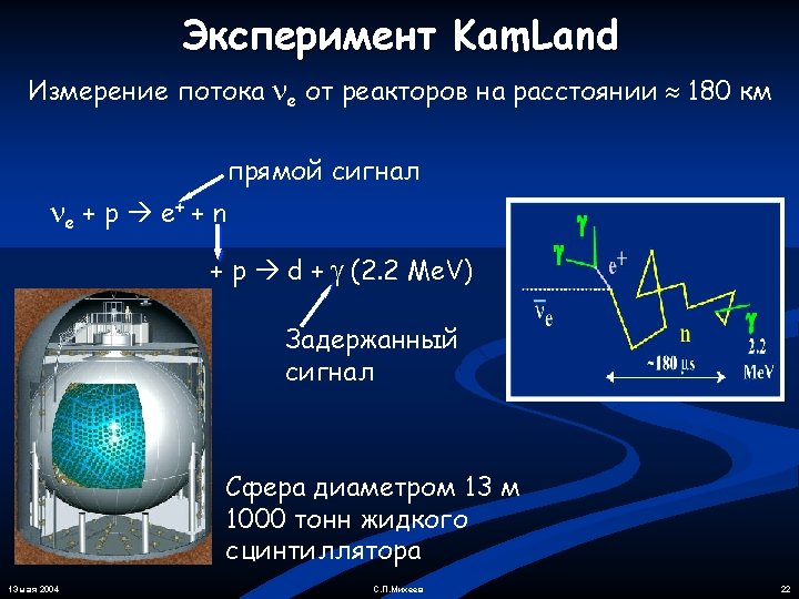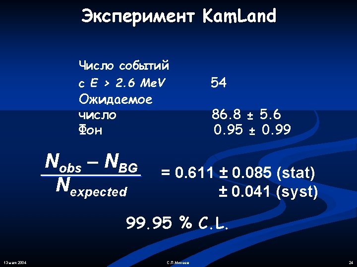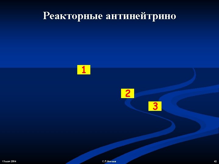 Реакторные антинейтрино Dominant 12 Oscillation P( P( e e e) e) Distance (m) Subdominant 13 Oscillation 13 мая 2004 С. П. Михеев 41