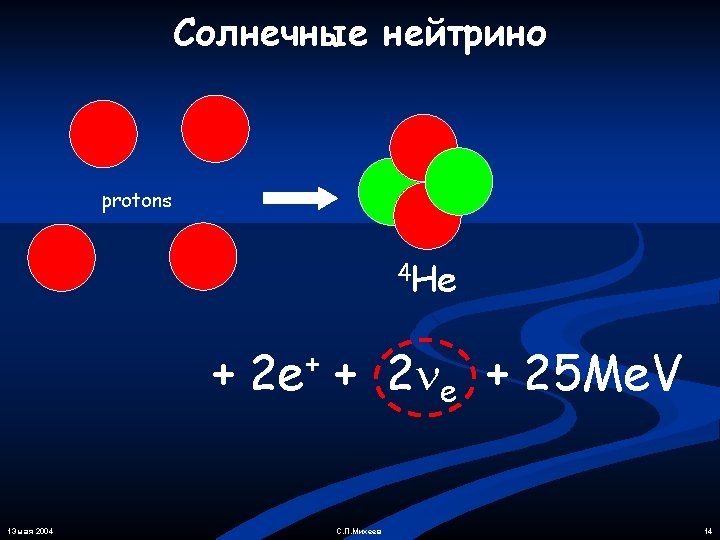 Атмосферные нейтрино Mostly upward Masaki Ishitsuka NOON 2004 1489. 2 days FC+PC Preliminary Best fit expectation w/ systematic errors Null oscillation MC Mostly downward Best-fit expectation m 2=2. 4 x 10 -3, sin 22 =1. 00 c 2 min=37. 8/40 d. o. f 13 мая 2004 С. П. Михеев 13