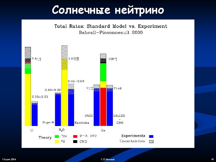 Атмосферные нейтрино Черенковский детектор Super-Kamiokande C Scientific American e Partially contained Fully contained 42 m Choji Saji NOON 2004 e 39 m 50, 000 тонн (22, 500 тонн) 13 мая 2004 С. П. Михеев 5