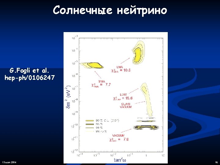 Атмосферные нейтрино Choji Saji NOON 2004 2 -flavor oscillations • m i l Pre 13 мая 2004 Best fit: sin 22 =1. 0 m 2 = 2. 0 x 10 -3 e. V 2 2 = 170. 8/170 dof y r a in • 90% C. L. region: sin 22 > 0. 90 1. 3 < m 2 < 3. 0 x 10 -3 e. V 2 С. П. Михеев 8
