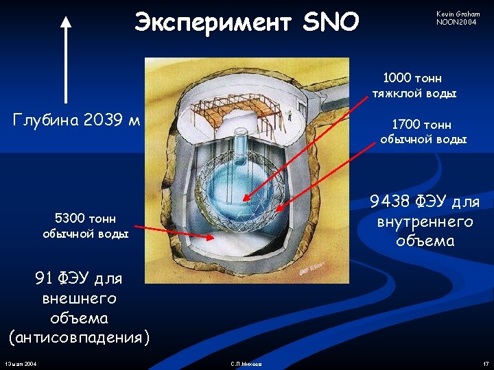 Pure D 2 O (phase I) 13 мая 2004 Эксперимент SNO С. П. Михеев Kevin Graham NOON 2004 Salt (phase II) 19