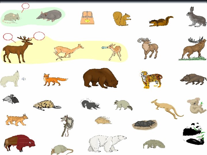 • Order perissdactyls--hoofed animals w/ odd # toes-horses, tapirs, rhinos, zebras • Order carnivores-meat eaters--cats, dogs, foxes , bears, racoons, walruses-some omnivores • Artiodactyls-even- toed hoofed-grazing animals • Xenathrans-no teeth-anteaters, armadillos • Primates