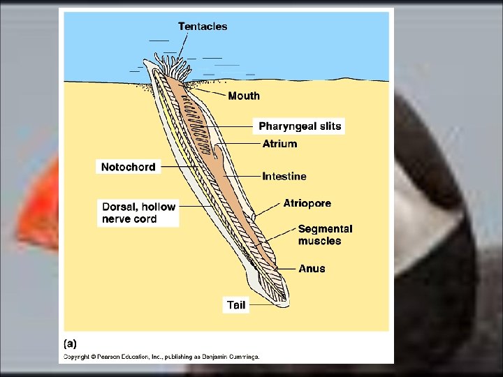 Subphylum cephalochordata • • Lancelets Nerve cord Notochord, pharyngeal pouches Temporary tail Gills Closed circulatory system, no true heart Muscle units
