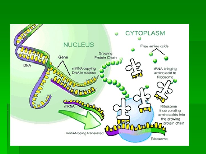 § Ribosomal RNA (r. RNA)- portion of the DNA code for the RNA that makes up ribosomes § Helps to produce enzymes needed to bond amino acids together during protein synthesis