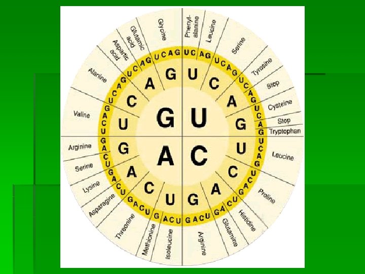 § There are 64 different codons in the genetic code § Genetic code was figured out by studying E. coli. § Codons represent the same amino acids in all organisms.