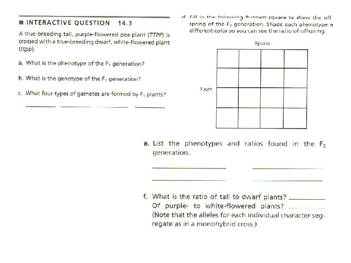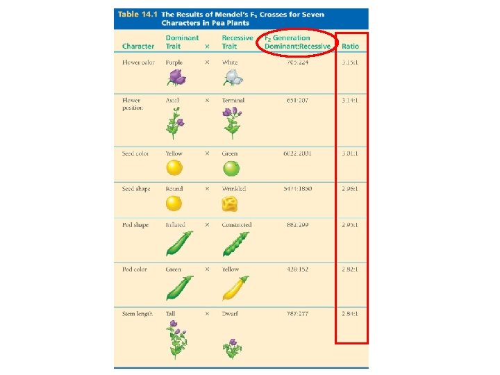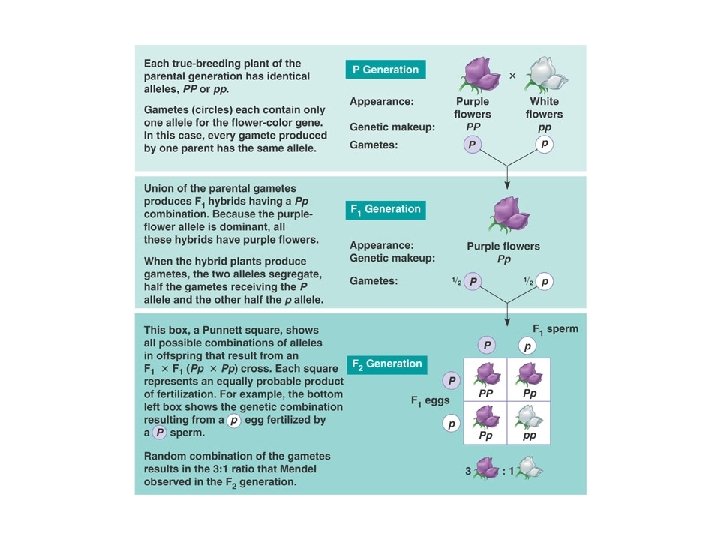 LE 14 -6 3 Phenotype Genotype Purple PP (homozygous Purple Pp (heterozygous 1 2 1 Purple Pp (heterozygous White pp (homozygous Ratio 3: 1 Ratio 1: 2: 1 1