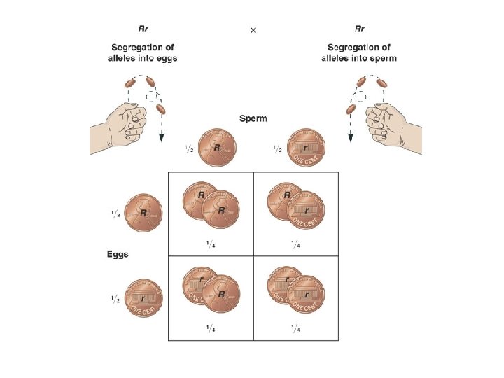 Rules of Probability & Genetics • • Probability ranges from 0 – 1 Rule of Multiplication: Used to determine the chance of two or more independent events occurring together 1. Determine probability of each independent event 2. Multiply probabilities together Ex: What is the probability (chance) that when 2 coins are flipped they will both end up heads? ½ x ½ = ¼ (or. 25)