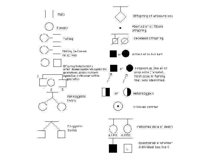 Pedigree • Family tree showing relationships between family members and the pattern of inheritance across the generations