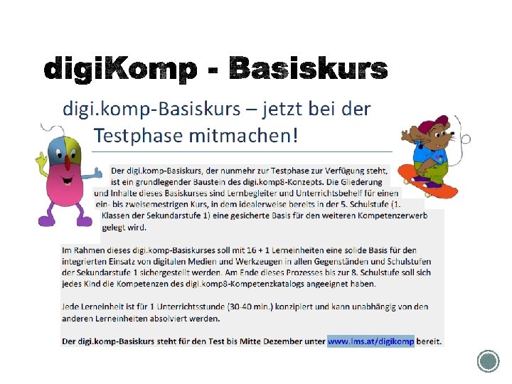 § Suchen Sie sich bitte auf Digi. Komp www. digikomp. at 1 -2 Beispiele aus. § Versuchen Sie mit Hilfe der Maske: Challange based learning die Lernsequenz zu analysieren. § Ergänzen Sie bitte eigene Ideen und Anregungen. § Posten Sie den Link des Beispiels und Ihre Maske in das Forum: Digi. Komp § Vergleichen Sie Ihre Ergebnisse in Gruppen (3 -4)