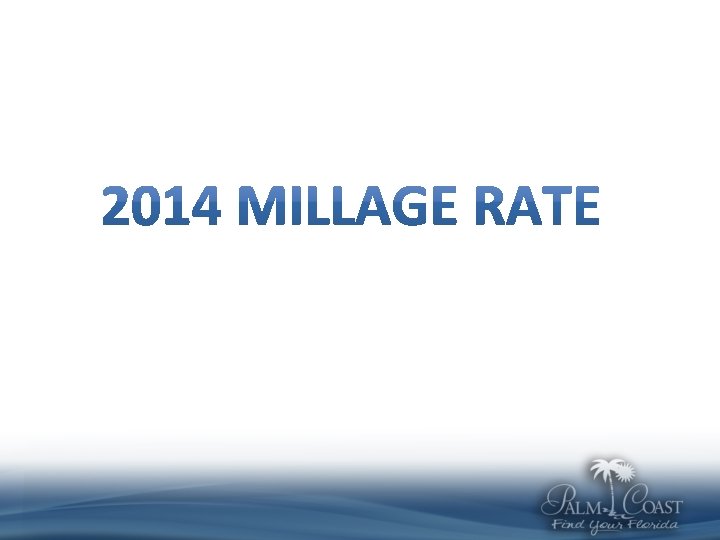 2013 Millage Rates Survey of Cities between 60 K-90 K Population 18 Cities with Millage • Lowest Rate 2. 0000 Weston • Second Lowest 3. 4100 Boca Raton • Third Lowest 4. 2958 Palm Coast Source for Population: Office of Economic & Demographic Research Source for Millage Rates: State of Florida, Division of Revenue