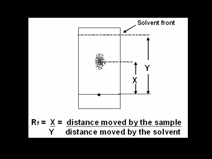Chromatographic Separation of Sugar • The separation is measured in terms of a unit called Rf (relative rates of flow) with respect to the solvent front. • The figure below explains how to calculate this value.