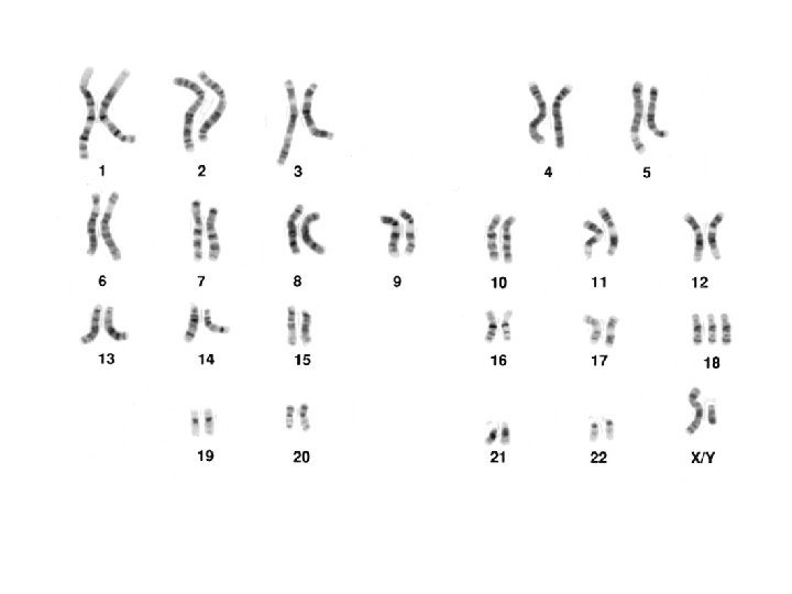 Abbreviations you should know + - gain 47, XY, +21 (trisomy 21) loss 45, XX, -22 (monosomy 22)