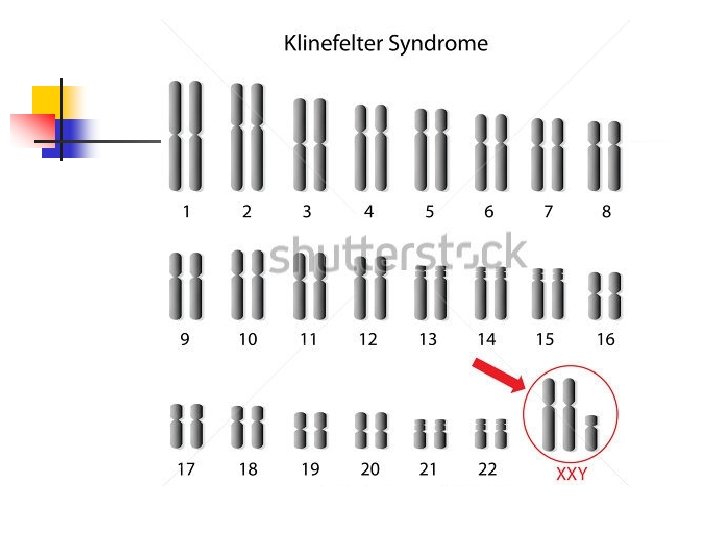 Klinefelter Syndrome n n Trisomy of sex chromosome - XXY (An additional X chromosome in males) Occurrence – 1 in 500 -1000 males