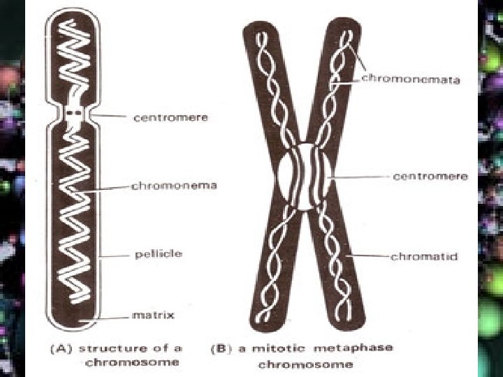 • Rod-shaped dark stained nucleoprotein bodies seen during mitosis metaphase. • The name chromosome was given by Waldeyer in 1888. • They can be clearly visible during cell division. • Composed of thin chromatin threads called chromonema.