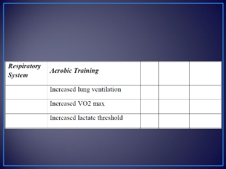 • Chronic exercise provides stimulus for the systems of the body to change • Systems will adapt according to level, intensity, and volume