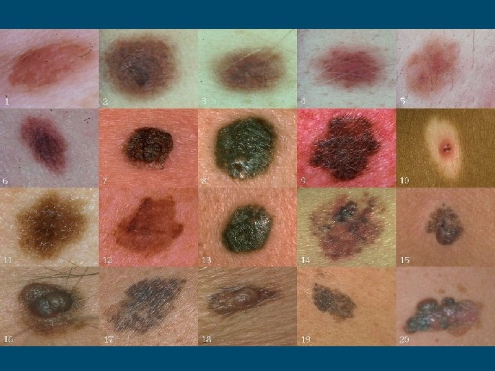 Skin Cancer § Also called melanoma. § Can be detected in physical exam and removed by a biopsy. § Behavioral factors – exposure to the sun or radiation, failure to use sunscreen/clothing/shade, use of tanning beds. § Environmental factors – depletion of ozone layer, lack of shade, time of day, occupation