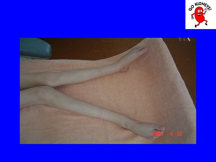 Renal osteodystrophy Clinical signs: - delay in growth - bone pain especially in joints that bear weight (column back injury coxofemoral joints, knees, punches), in particular in the change in position. • epiphyseal dislocation (femur, radius) that induces waddle / limp, limitation of joint movement • bone deformations Children under 4 years make the aspect like lesions of - D sensitive rickets