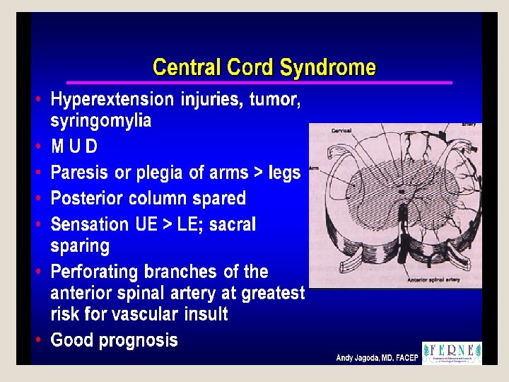 Central spinal cord lesion �Forward extension of disease anterior horn cells involved segmental neurogenic atrophy, paresis, areflexia �Lateral extension I/L Horner syndrome Kypho scoliosis Spastic paralysis �Dorsal extension I/L Position sense, vibratory loss