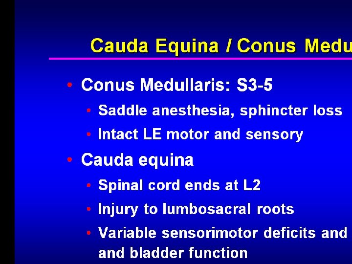 Motor disturbances • Flexion of hip , knee occur in low spinal & complete lesion • At the level of lesion – paresis, atrophy, fasciculations, and areflexia(LMN signs) in a segmental distribution because of damage to the anterior horn cells and ventral roots