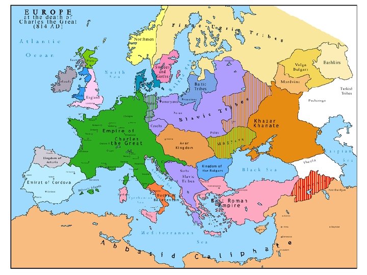 843 C. E. - The Treaty of Verdun. Charlemagne’s empire is divided between his grandsons. Charles the Bald Lothair Louis the German (Papal States) 3 84. C. E