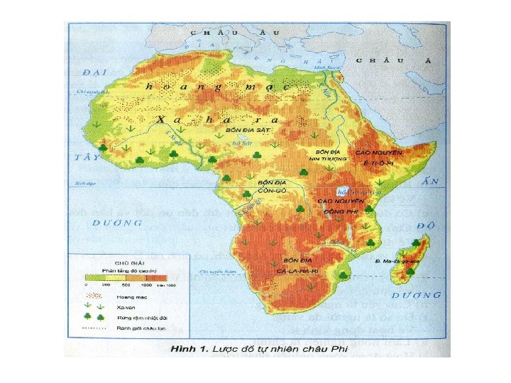 Bồn địa Sát Bồn địa Nin thượng Bồn địa Côn-gô Bồn địa Ca-la-ha-ri Cao nguyên Ê-ti-ô-pi Cao nguyên Đông Phi