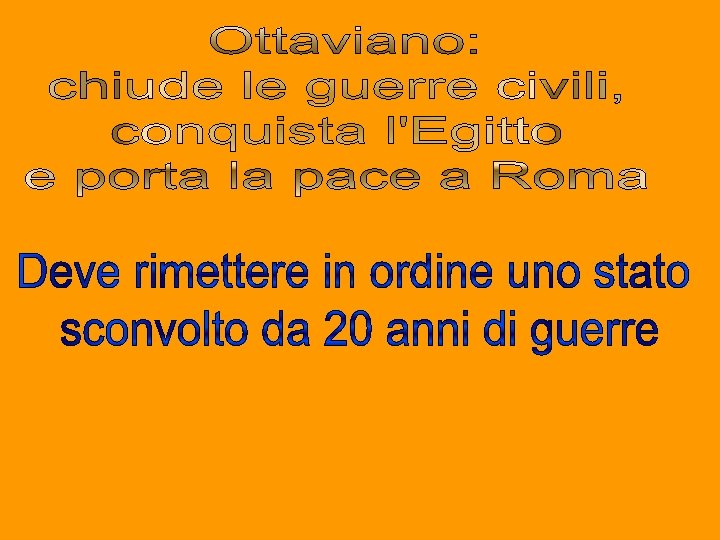 RIVENDICA L’EREDITA’ SPIRITUALE SI PRESENTA AI SENATORI COME IL PALADINO DELLE ISTITUZIONI ROMANE. AL POPOLO COME L’EREDE DEL DIVINO CESARE. “IO DEVOLVERO’ LA META’ DELLA MIA EREDITA’ AL POPOLO DI ROMA” RITIENE DI ESSERE IL VERO E LEGITTIMO SUCCESSORE DI CESARE PARTE PER LA GALLIA, SENZA CONSENSO DEL SENATO E ABBANDONANDO LA SUA CARICA DI CONSOLE, PER UCCIDERE DECIMO, UNO DEGLI ASSASSINI DI CESARE. GRANDE POTENZA MILITARE: ARRUOLA I VETERANI DI CESARE E SI CREA UN PROPRIO ESERCITO. OTTAVIANO CONSOLE