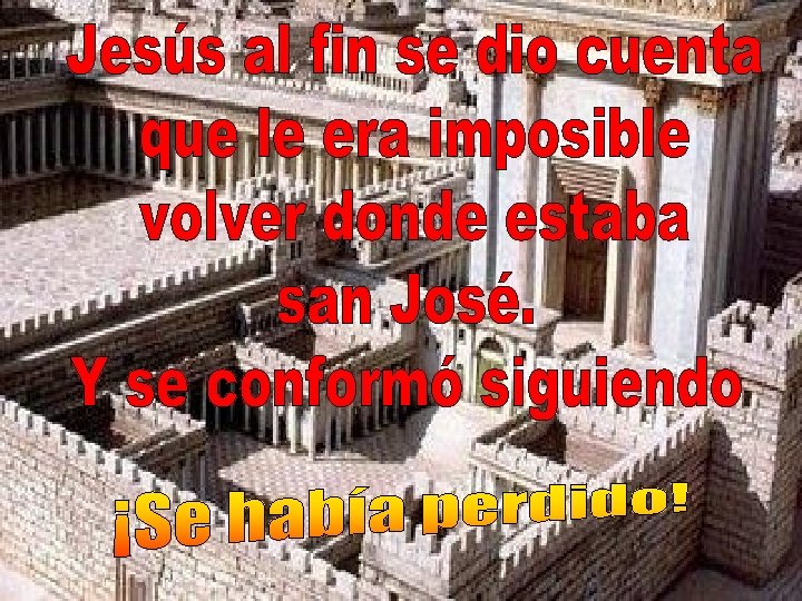 Entonces ¿Cómo pudo perderse? Seguramente Jesús tendría muchas ganas de hablar con algún doctor de la ley sobre si a Dios le llamamos “Señor de los ejércitos”, “todopoderoso”, como había aprendido en Nazaret o le podemos llamar “Padre”, como lo sentía dentro de sí.