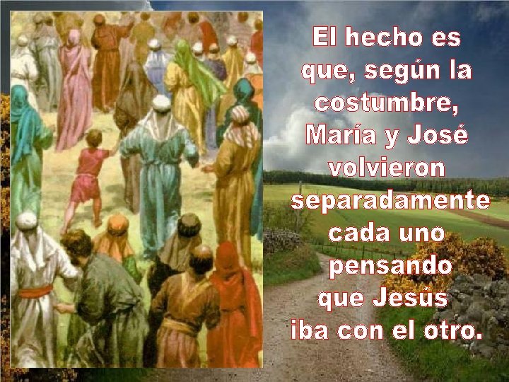 San José pensó que Jesús habría ido a con María San José pensó que Jesús habría ido con María, pues las mujeres estaban en sitio aparte.