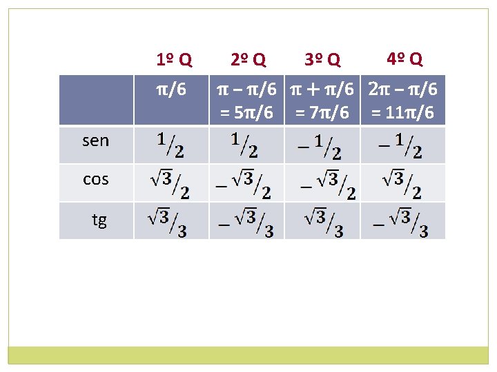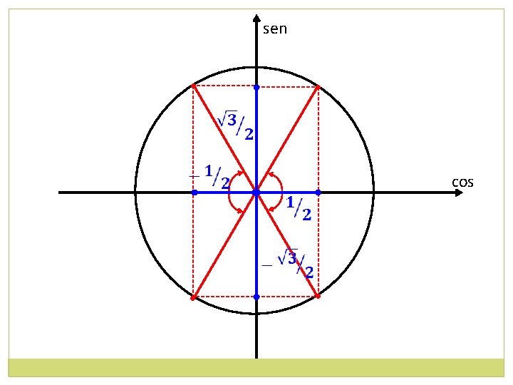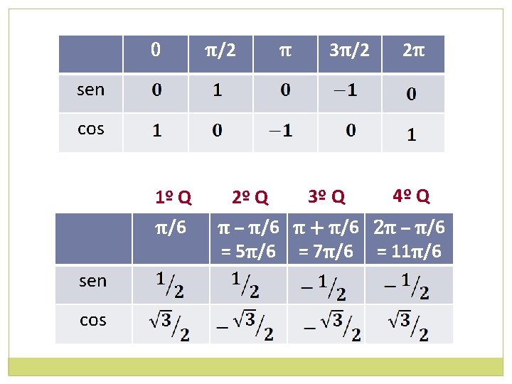 sen 150° ou 5π/6 • • 30° ou π/6 • 210° ou 7π/6 • cos • 330° ou 11π/6