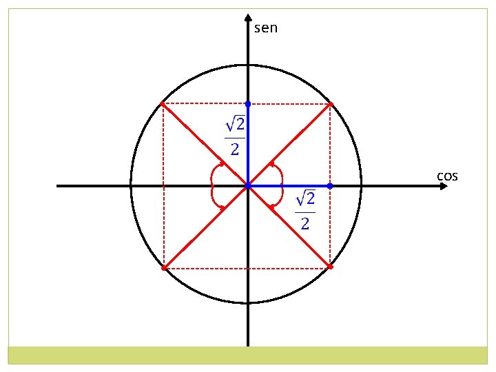 sen (3π /4) rad • • (π/4) rad cos • • • (5π /4) rad (7π /4) rad
