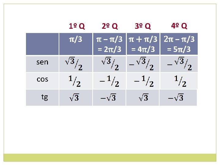 tg T sen • • 120° ou 2π/3 • 60° ou π/3 cos