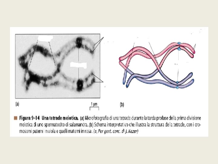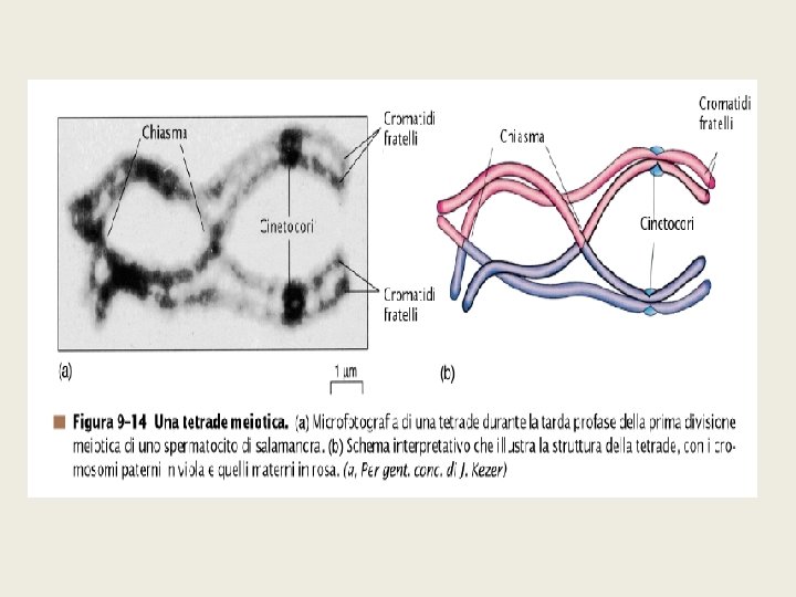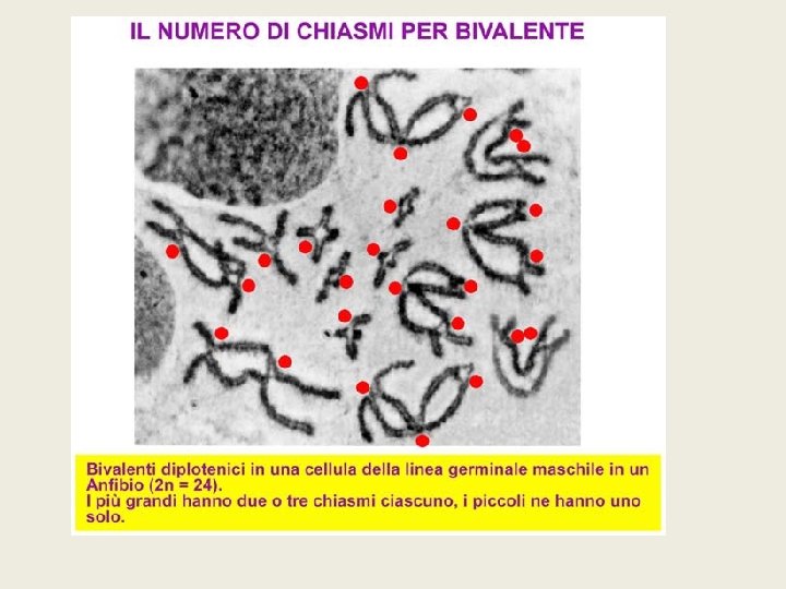CROSSING-OVER • • scambio reciproco di segmenti di cromosomi In fase di tetradi Il punto dello scambio è detto chiasma avviene tra cromatidi omologhi non fratelli Spesso più eventi per coppia di omologhi (1 -3) Casuale 1 crossing over: tanti geni