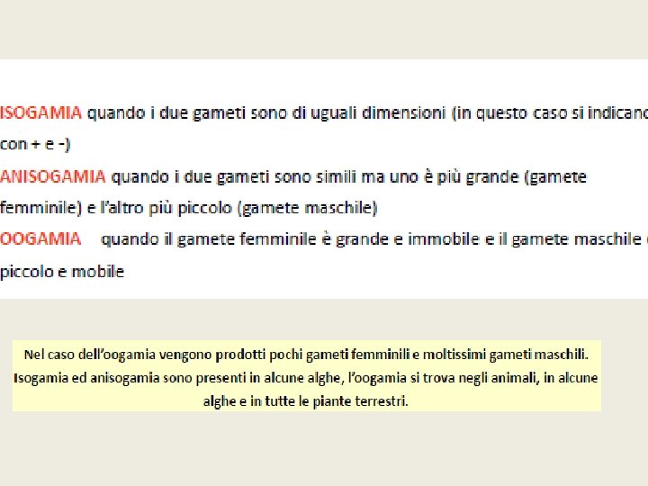… esistono diversi tipi di gamia a) isogamia b) anisogamia c) oogamia
