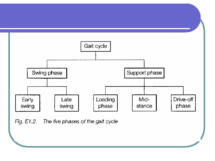 Posisi sendi pada fase Early swing Fleksi hip (9 – 30 ˚), fleksi lutut (30 – 60˚), Dorsofleksi ankle l Late swing ekstensi hip, ekstensi lutut, dorsi fleksi ankle l Loading phase fleksi hip, flekso lutut, plantar fleksi ankle l Mid stance ekstensi hip, ekstensi lutut, dorsi fleksi ankle l Drive off ekstensi hip, fleksi lutut, plantar fleksi ankle l