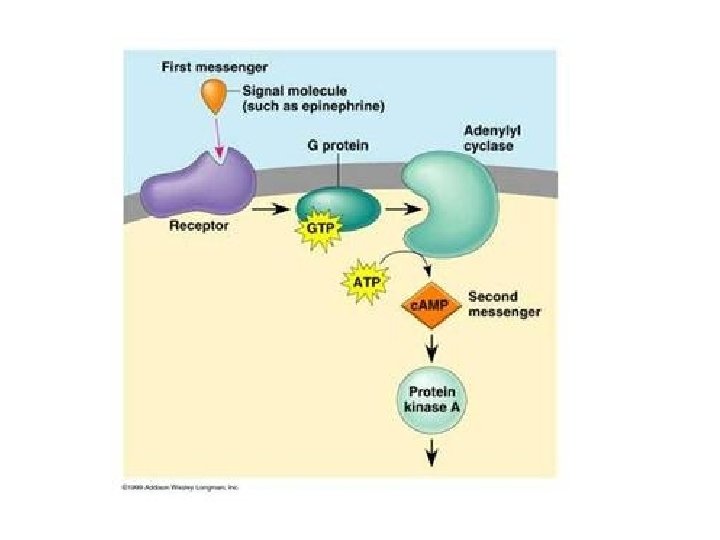 NUCLEÓTIDOS NO NUCLEICOS 2) AMPc • Nucleótido de adenina cuyo ácido fosfórico está esterificado con los carbonos 5’ y 3’ de la ribosa formando una estructura cíclica. • Se forma a partir de ATP intracelular en una reacción catalizada por la adenilato ciclasa (localizada en la membrana celular). • Se denomina segundo mensajero.