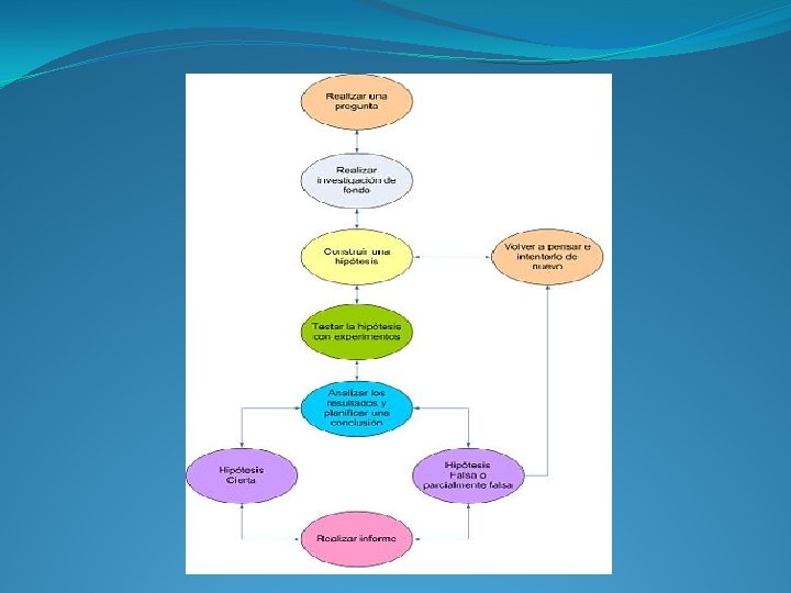 El método científico Es el proceso mediante el cual una teoría científica es validada o bien descartada. Los principios fundamentales son: v La reproducibilidad: es la capacidad de repetir un determinado experimento en cualquier lugar y por cualquier persona. Esto se basa, esencialmente, en la comunicación y publicidad de los resultados obtenidos. En la actualidad éstos son publicados en revistas científicas y revisados por pares. v La falsabilidad: es la capacidad de una teoría de ser sometida a potenciales pruebas que la contradigan. Bajo este concepto no existe en la ciencia el “conocimiento perfecto”. Con excepción de la matemática, una teoría científica “probada” se mantiene siempre abierta a escrutinio.