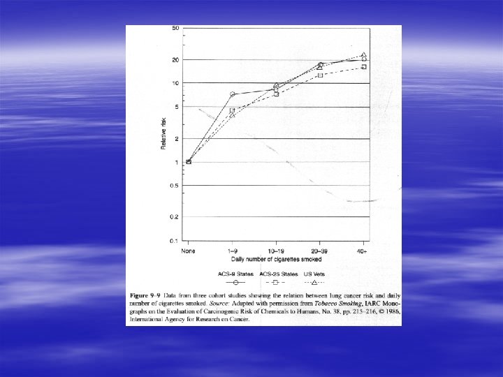 Temporal Relationship § Temporal relationship is approved by several prospective cohort studies when exposure to cigarette smoking was obtained before the occurrence of lung cancer § The latent period between first exposure and the onset of the disease is about 20 -30 years