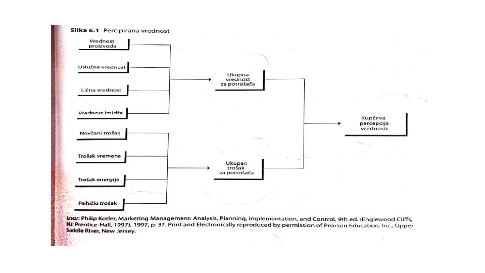 CIJENA U USLUŽNOM SEKTORU • UKUPNA VRIJEDNOST ZA POTROŠAČA: 1. VRIJEDNOST PROIZVODA, 2. USLUŽNA VRIJEDNOST, 3. LIČNA VRIJEDNOST, 4. VRIJEDNOST IMIDŽA. • UKUPAN TROŠAK ZA POTROŠAČA: 1. NOVČANI TROŠAK, 2. TROŠAK VREMENA, 3. TROŠAK ENERGIJE, 4. PSIHIČKI TROŠAK.