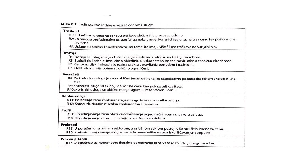 1. UPOZNATOST POTROŠAČA SA CIJENAMA USLUGA • Upoznatost potrošača sa cijenama usluga manja je od upoznatosti sa cijenama fizičkih dobara. • Razlozi: • Varijabilnost usluge ograničava znanje potrošača; • Uslužna preduzeća nerado objavljuju cijene, a nekada i ne mogu, jer ne znaju koliko da naplate dok se ne završi uslužni proces; • Potrebe pojedinih potrošača variraju; • Prikupljanje informacija o cijenama je jako naporno za potrošača.