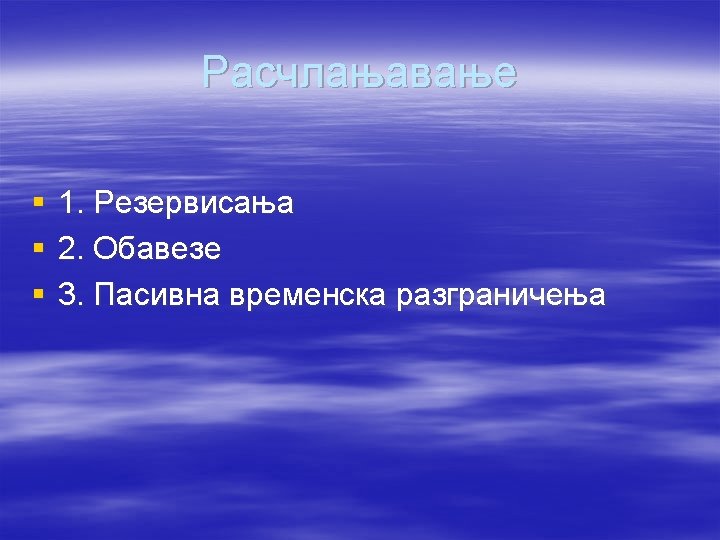 1. Rezervisanja i rezerve § Rezerve § sopstveni kapital § osim zakonskih, nemaju unapred utvrdjen cilj § formiraju se iz oporezovane dobiti § njihovo formiranje i razlaganje ne utiče na visinu rezultata § Rezervisanje § obaveza § imaju unapred utvrdjenu namenu § formiraju se na teret prihoda § njihovo formiranje smanjuje, a razlaganje može da poveća или смањи rezultat