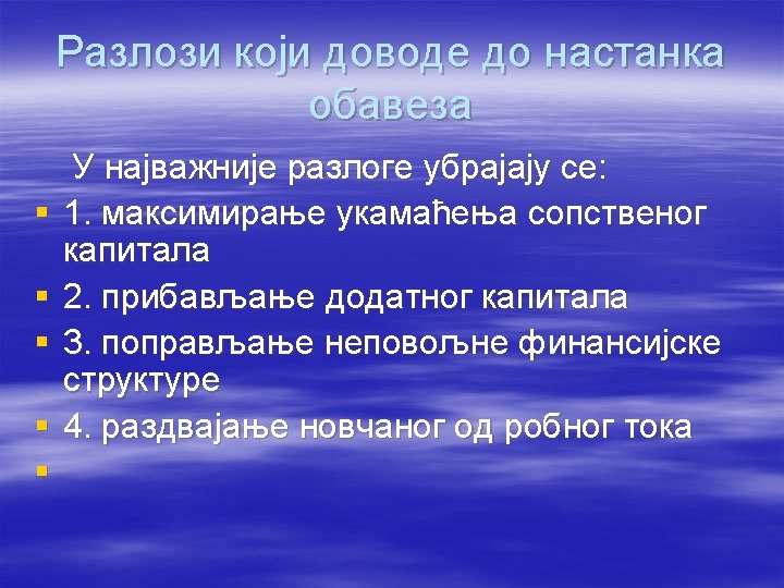 2. Rezervisanja i obaveze § Rezervisanja § pozajmljeni kapital § formiraju se u godini u kojoj ekonomski nastaje obaveza § visina i dospelost nepoznati § Obaveze § pozajmljeni kapital § formiraju se u godini u kojoj ekonomski nastaje obaveza § visina i dospelost poznati